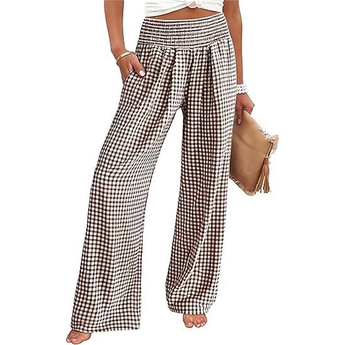 Per donna Gamba larga Pantaloni Streetwear Stile Etnico Casual Lunghezza intera Vita Alta Vita media Plaid Elastico in vita Confortevole Micro-elastico All'aperto Vacanza Quotidiano Nero Rosa Verde
