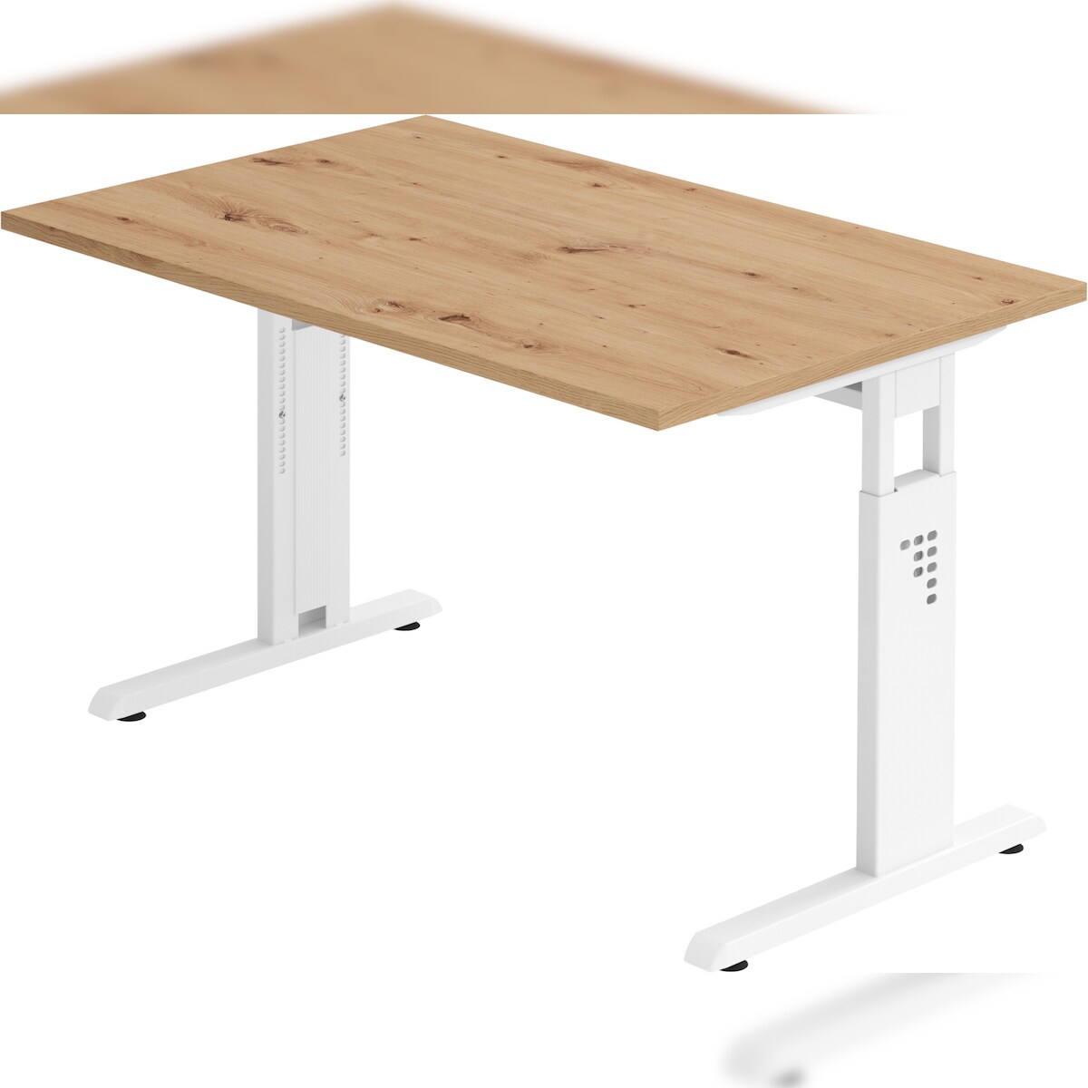 bümö höhenverstellbarer Schreibtisch O-Serie 120x80 cm in Asteiche, Gestell in weiß - PC Tisch klein für's Büro manuell höhenverstellbar,