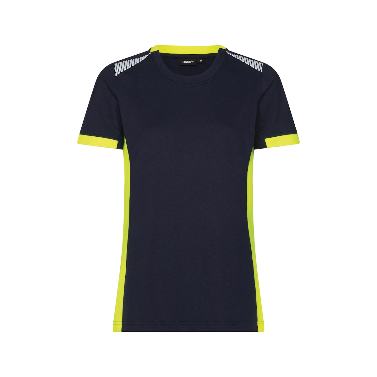 DASSY® Tampico Women Damen-T-Shirt, Logix, Rundhals, COPES 03, Reflexdetails, OEKO-TEX® Standard 100, Art. 710070 nachtblau/neongelb L
