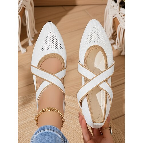 Per donna Casuale Quotidiano Tacco basso Punta a Punta Casual Comfort Minimalismo Tessitura Volante Mocassino Nero Bianco Blu scuro