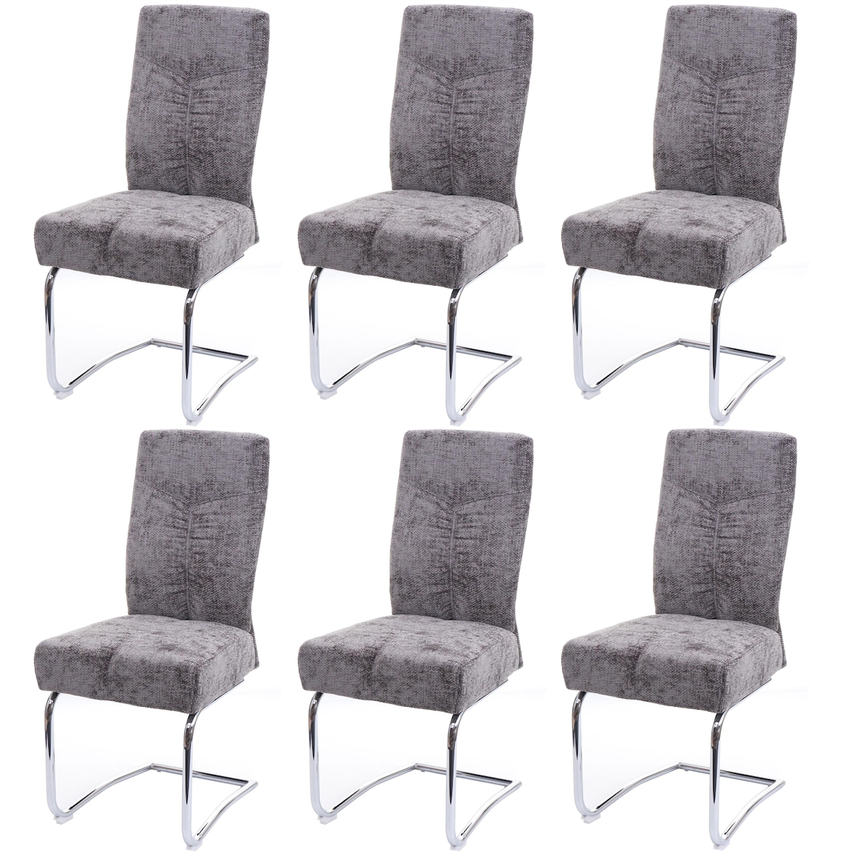 Mendler 6er-Set Esszimmerstuhl HWC-H28, Stuhl Küchenstuhl, Metall ~ grau, schwarze Beine, Samt