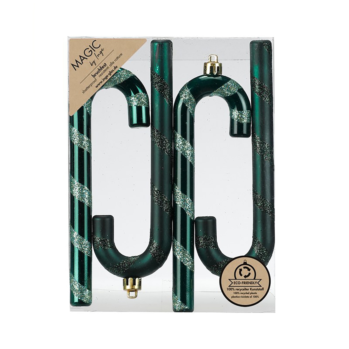 Inges Magic & Goodz 4 Christbaumschmuck Zuckerstangen 14cm Kunststoff Christbaumkugeln Glitzer Weihnachtskugeln Weihnachtsbaumkugeln Weihnachtsdeko Bruchsicher Dunkelgrün