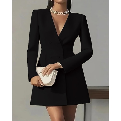 Per donna Mini Abito Abito nero Abito Elegante Elegante Moda Classico Quotidiano All'aperto Ufficio Vestibilità regolare Semplice Manica Lunga Scollo a V Nero Rosso Verde Estate Primavera