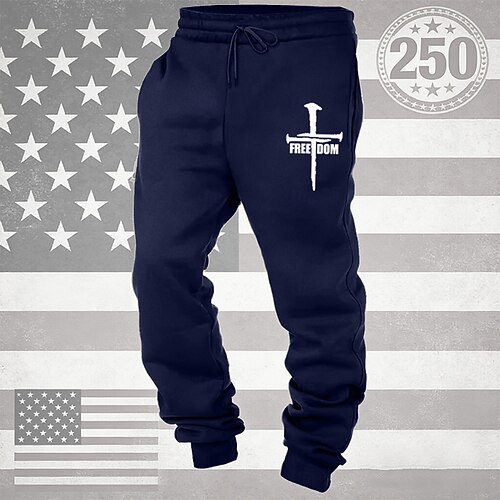 Per uomo Pantaloni da tuta Joggers Pantaloni Coulisse Tasca Elastico in vita Croce Comodità Traspirante Quotidiano All'aperto 250° anniversario dell'America Vacanza Moda Blu Nero Micro-elastico