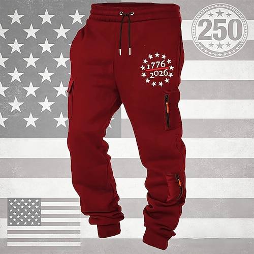 Per uomo Pantaloni da tuta Joggers Pantaloni Coulisse Tasca Elastico in vita Bandiera Nazionale Comodità Traspirante Quotidiano All'aperto 250° anniversario dell'America Vacanza Moda Blu Nero