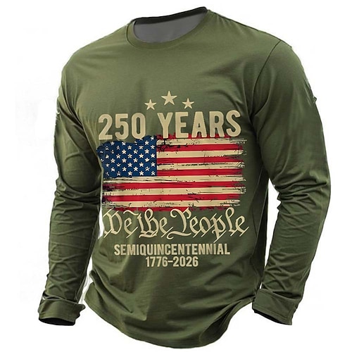 250° anniversario dell'America Per uomo Bandiera Americana Aquila Maglietta Manica Lunga maglietta Stampa 3D Girocollo Camicia Quotidiano Casual Quotidiano Viaggio Feste Blu Nero Verde militare