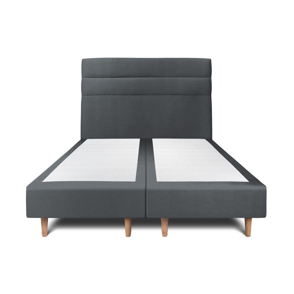 Lit avec tête de lit lignes velours et sommier tapissier Gris anthrac