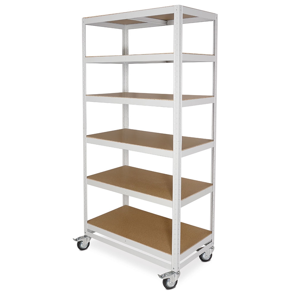 BRB Regalwagen/Kommissionierregal mit 6 Ebenen, Tragkraft 200 kg, BxTxH 900 x 500 x 1905 mm, lichtgrau
