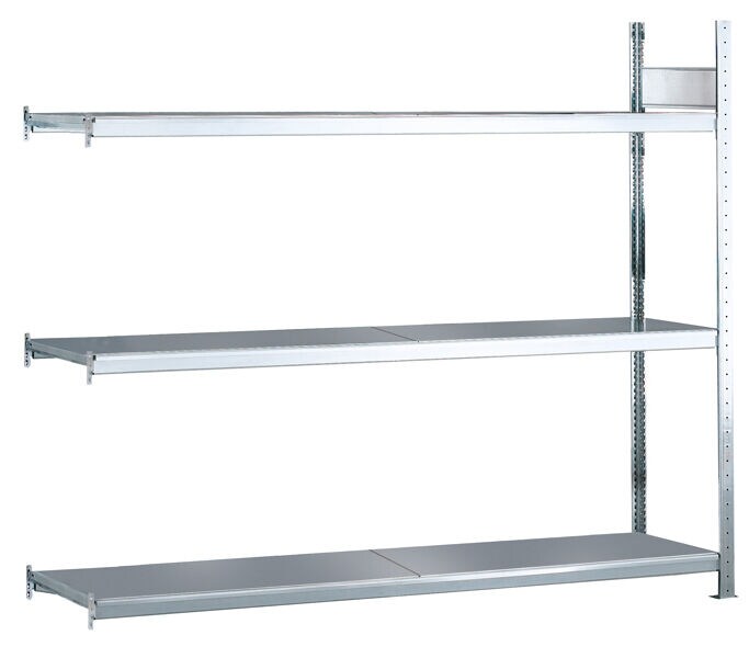 SCHULTE Lagertechnik Anbauregal, Weitspannregal WS 2000 mit Stahlböden, 2000 x 2000 x 800 mm (HxBxT), verzinkt, 3 Ebenen, Fachlast 400 kg, Feldlast 1.200 kg