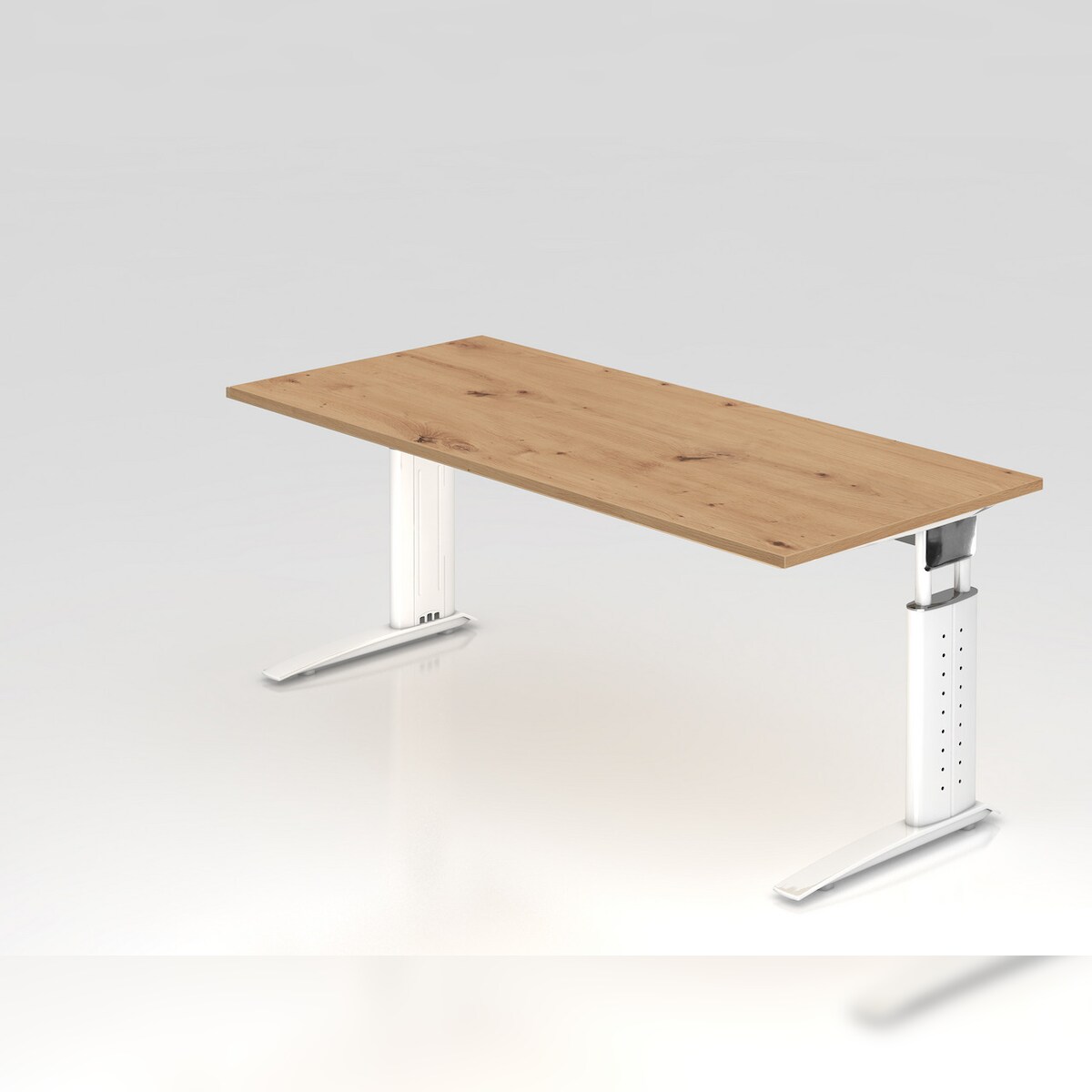 PROREGAL Schreibtisch Mauri | Asteiche | Weißes Gestell | BxT 180x80cm | Arbeitshöhe 68-86cm | höhenjustierbar, 2cm Raster | C-Fuß-Gestell