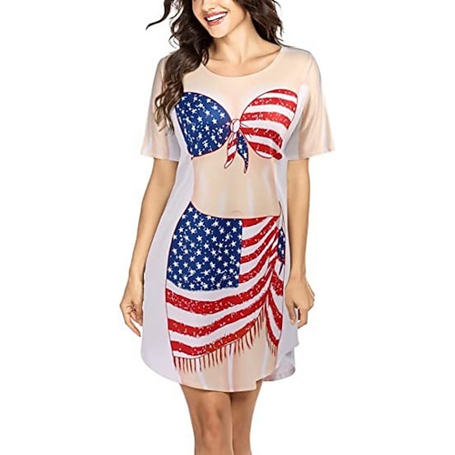 Abito Patriottico da Donna Maxi Maniche Lunghe Abito Boho Elegante Vintage Maniche a Farfalla Vacanza Spiaggia Regolare Fit Bandiera Vintage Collo Rotondo Blu Estate