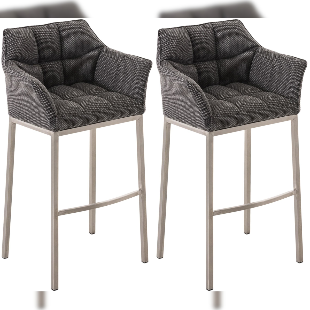 CLP 2er Set Barhocker Damaso Stoff mit Vierfußgestellen titangrau/edelstahl