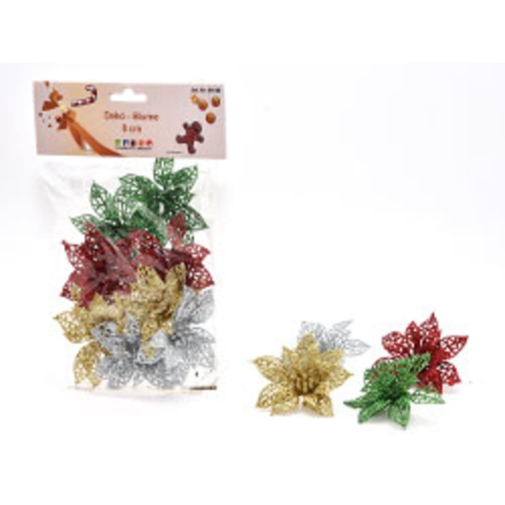 HundB Deko Weihnachtsblumen 8 Stück 8cm farblich sortiert Weihnachtsdeko Christbaumschmuck Baumdeko Blütendeko Ornamente Deko Set