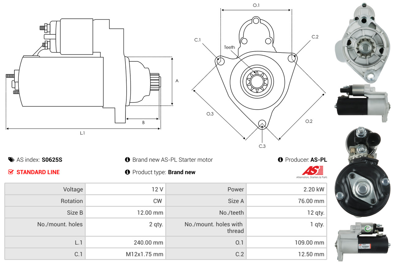 AS-PL Starter S0625S 12V für VW MERCEDES-BENZ 2H0911023K HVW9069061300 2H0911023HX