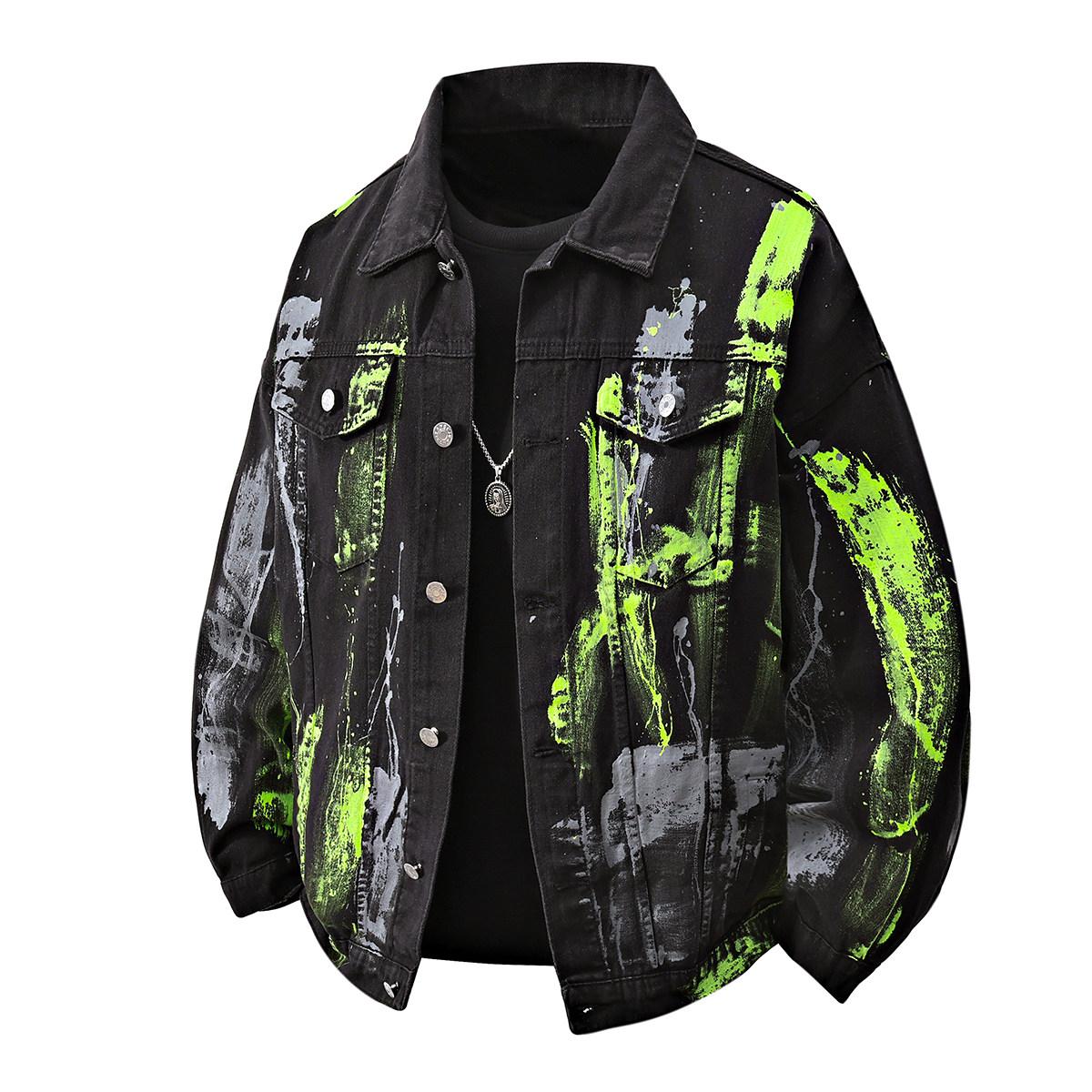 Men Denim Jackets Man Painted Jeans Coat Men Graffiti Hip Hop White Trendy Coats Male Hip Hop Black Jacket Men Oversize Outerwear cm white