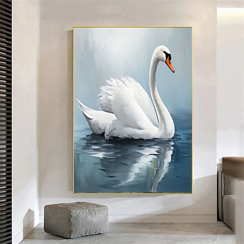 dipinto a olio fatto a mano astratto elegante dipinto di cigno grande dipinto di animali astratti grigio marrone arte murale arte astratta moderna grande tela arte pittura acrilica
