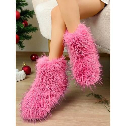 stivali da neve in pelliccia sintetica da donna, caldi stivaletti invernali per interni abbigliamento outdoor, comode scarpe di peluche per Natale, gite sugli sci tempo freddo