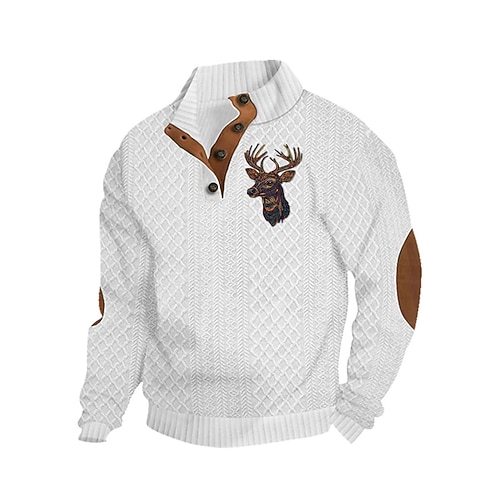 Per uomo Cervo Felpa Felpa Felpa Colletto alla coreana Di tendenza Informale Con stampe Viaggi Abbigliamento di strada Zip Up Autunno Inverno