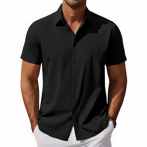 Per uomo Camicia Camicia casual Camicia con Bottoni Nero Bianco Kaki Manica Corta Semplice Colletto a Camicia Casuale Quotidiano Jacquard Abbigliamento Elegante Moda Casual