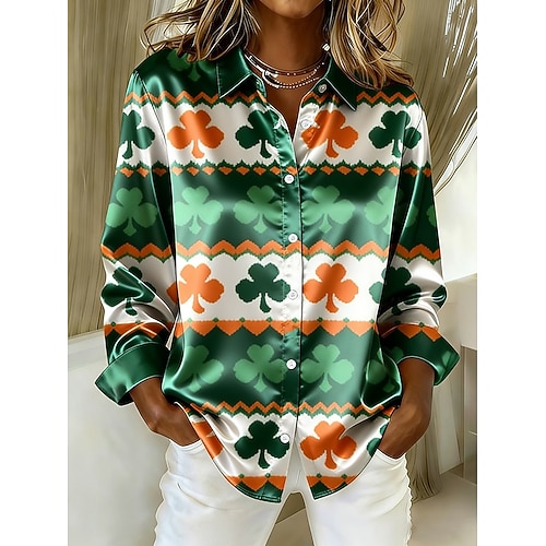Camicia da donna per il giorno di San Patrizio con grafica trifoglio vintage elegante moderna maniche lunghe colletto top regolari quotidiani festivi gialla arancione primavera inverno