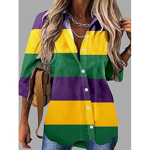 Carnevale Per donna Camicia Blusa Grafico Astratto Vintage Elegante Casual Manica Lunga Colletto a Camicia Top Regolari Quotidiano Bottoni Stampato Nero Giallo Viola Estate Primavera Autunno