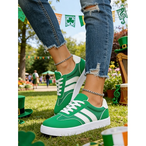scarpe da ginnastica casual a righe verdi da donna - scarpe comode con lacci, ideali per le celebrazioni di San Patrizio, festival all'aperto, brunch e commissioni quotidiane