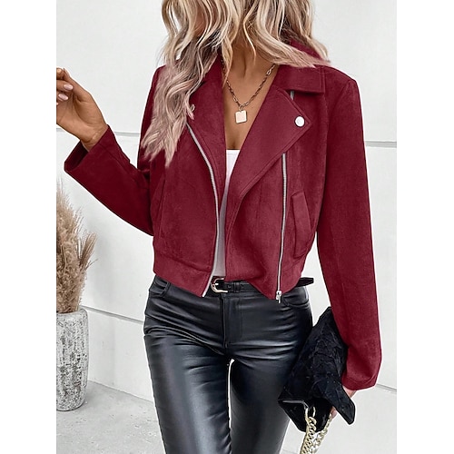 Per donna Giacca Casual Gilet in pelle scamosciata Confortevole Traspirante Cerniera Casual Semplice Vacanza Streetwear Casuale Abbigliamento quotidiano Cerniera Corto Collo ripiegato Vestibilit