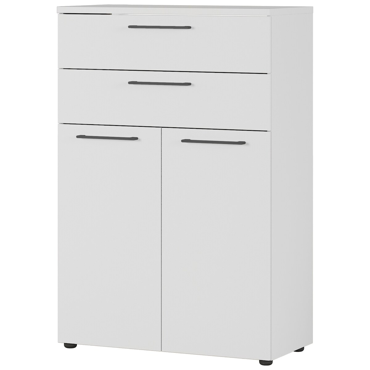 bümö Andratx Mehrzweckschrank 80cm breit, Büroschrank mit 2 Schubladen, Aktenschrank klein, Schrank mit Regal, Kommode in grau aus Holz, Sideboard