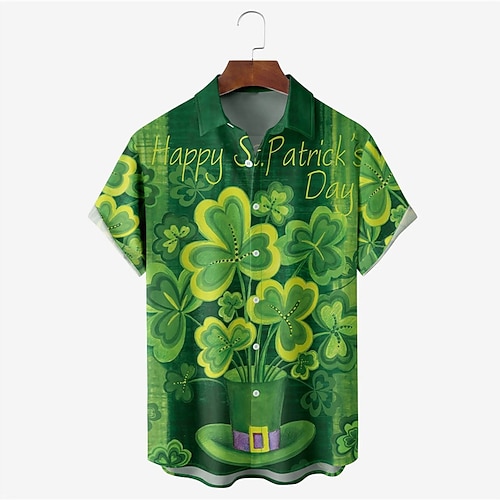 giorno di san patrizio quadrifoglio casual camicia da uomo outdoor street casual quotidiano estivo couverture manica corta bianco verde scuro verde s m l