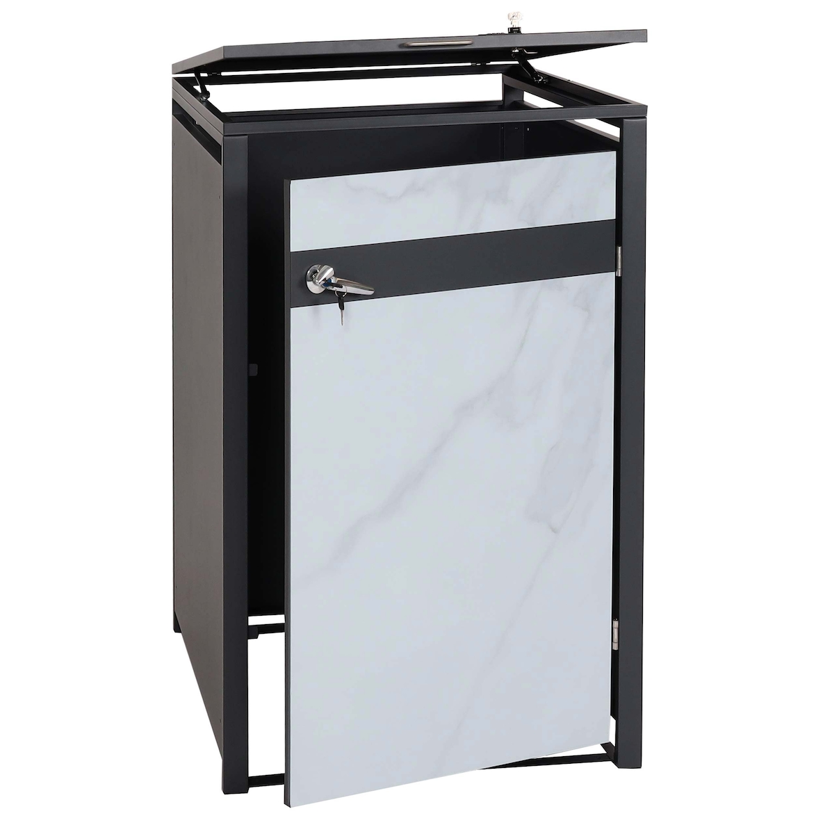 Mendler 1er Mülltonnenverkleidung HWC-J82, Mülltonnenbox, erweiterbar, Metall 32kg, anthrazit ~ Marmor-Optik hell