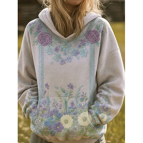 Felpa con cappuccio vintage boho 3D stampata per donna felpa patchwork felpa con cappuccio floreale felpa a maglione casual maniche lunghe cappuccio abbigliamento quotidiano da strada tasca frontale