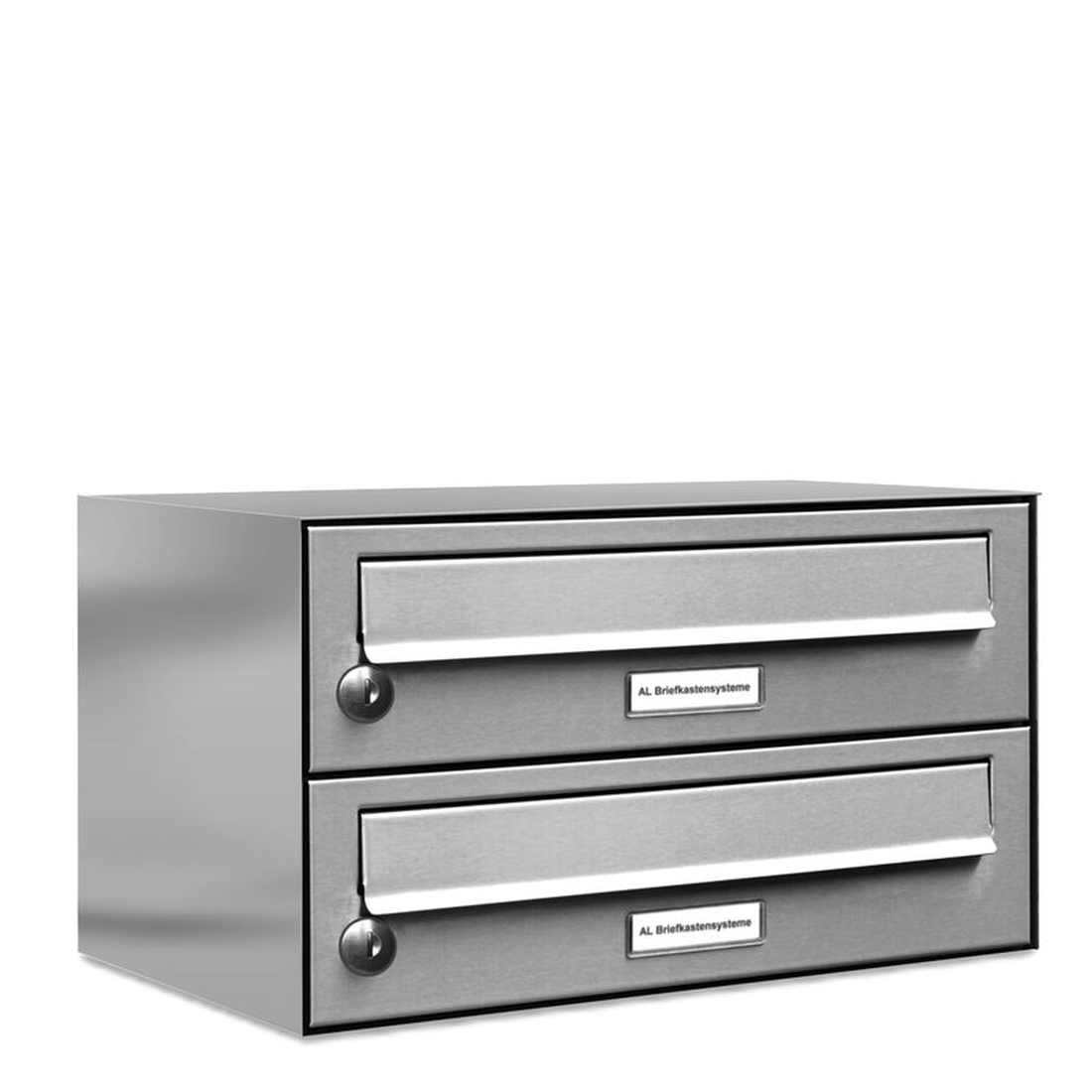 AL Briefkastensysteme 2 Fächer Premium Edelstahl Wand Briefkasten Anlage für Post A4, modern, robust und wetterfest, Artikelnummer: 132V2EA1