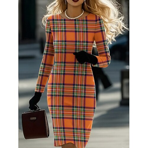 Per donna Mini Abito Vestito T-Shirt Casual Abiti semi formali Quotidiano Ufficio Vestibilità regolare Geometrico Pied-de-poule Manica Lunga Girocollo Blu Marrone scuro Rosa Rosso Primavera Autunno