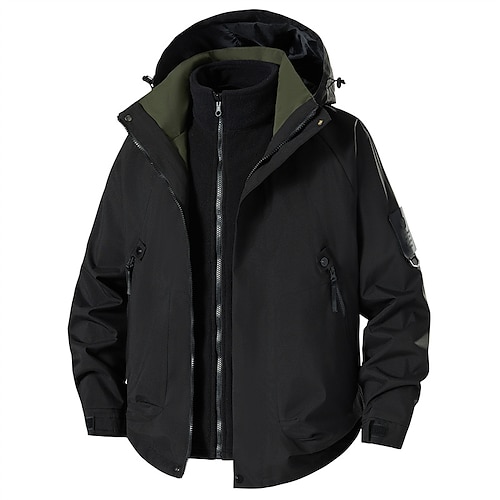 Per uomo Giacca da Esterno Impermeabile Giacca da Escursionismo Vacanza Quotidiano Caldo Tasca 3 in 1 Autunno Inverno Semplice Moda Classico Con Cappuccio Regolare Nero Giallo Verde Verde militare