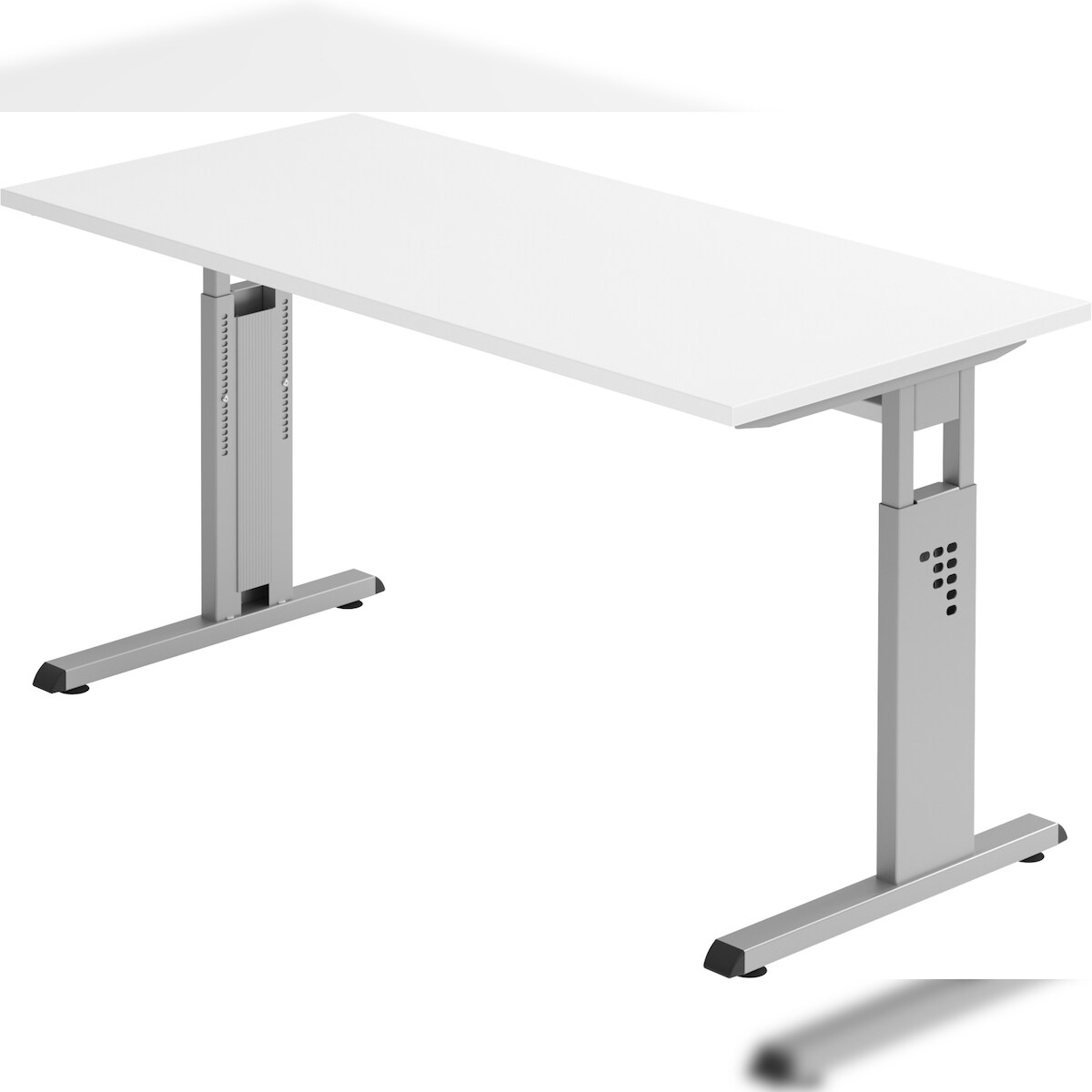 bümö Homeoffice Schreibtisch "O-Serie" höhenverstellbar, Tischplatte 140 x 67,2 cm in weiß, Gestell in silber