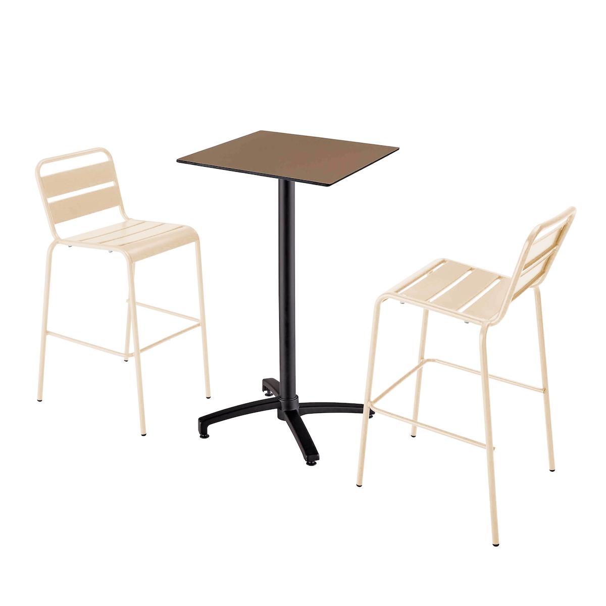 Oviala Business Set Stehtisch aus taupefarbenem Laminat und 2 Hochstühlen weiß