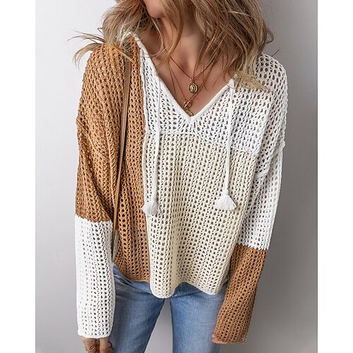 Per donna Felpa Maglione Streetwear Casual Blocco di colori Scollo a V Patchwork Traforato Lavorato a maglia Manica Lunga Top Regolari Maglia Quotidiano Ferie Uscire Caffè Autunno Inverno
