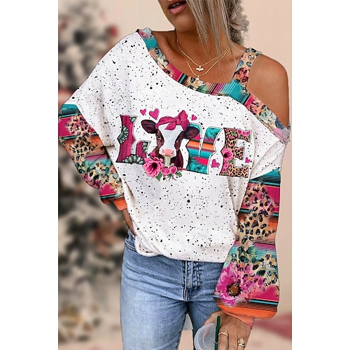 Per donna Camicia Blusa Con cuori Carnevale Informale Per uscire Bianco Verde chiaro Rosso Stampa Manica lunga Di tendenza Monospalla Standard Primavera Autunno