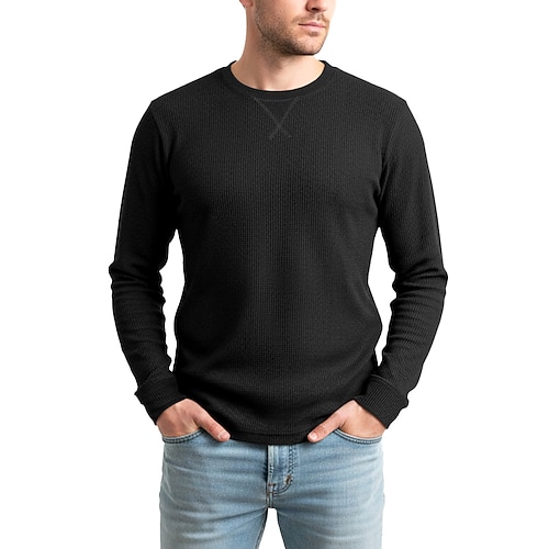 Per uomo Maglietta Waffle Maglietta Manica Lunga Girocollo Tutte le stagioni Tinta unica Tradizionale / Vintage Casual Puro All'aperto Casa Sport Outdoor Blu Nero Bianco Maglietta Top per Uomo