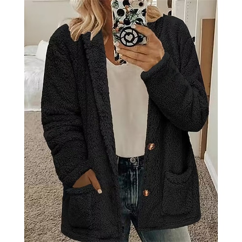 Per donna Cappotto Invernale Cappotto Teddy Caldo Confortevole Tasca Bottoni Elegante Moda Pelliccia Classico Semplice All'aperto Vacanza Casa Streetwear Regolare Senza colletto Vestibilità comoda