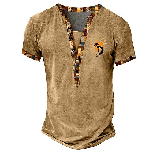 Per uomo Carnevale Grafico Tribale Stampa bandana Maglietta Maglia Henley Manica Corta Designer Etnico Casual Casuale Quotidiano Estate Primavera Blu Giallo Rosa Marrone Colletto Mao Henley Maglietta