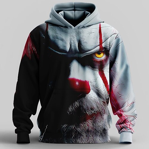 Per uomo Burlone 3D Felpa con Cappuccio Felpa Punk Esagerato Gotico Casual Manica Lunga Girocollo Con Cappuccio Club Abbigliamento casual alla moda Rosso Grigio Coulisse Autunno Inverno progettista S