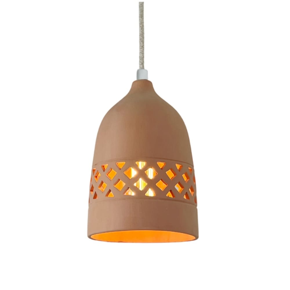Suspension en terre cuite motif Grec avec câble lin D.14cm