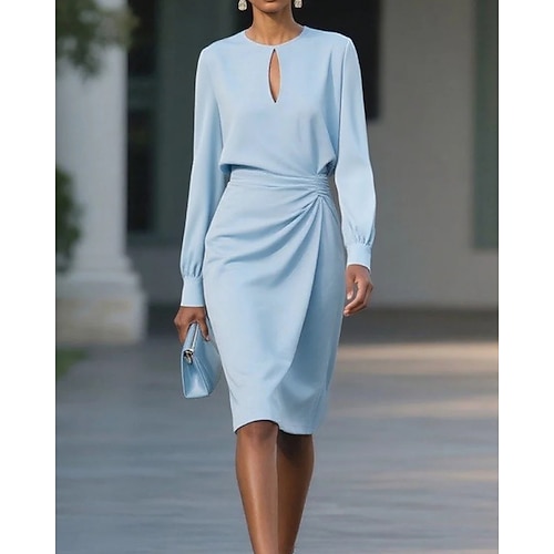 Per donna Abito Midi Abito con Paillettes Vestito da Festa Abito da Cocktail Abito a Portafoglio Moda Moderno Festa serale Feste Occasione speciale Vestibilità regolare Semplice Manica Lunga Girocollo