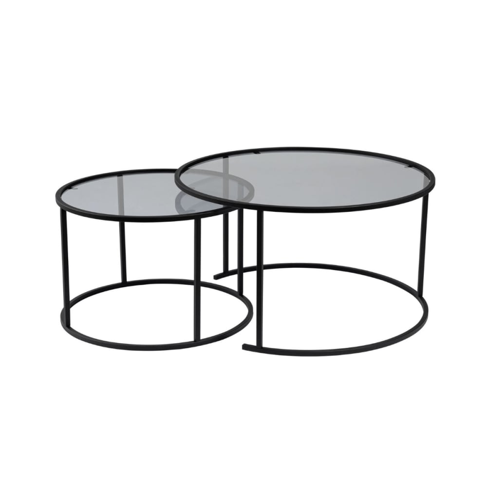 Set di 2 tavolini rotondi impilabili D80 cm - Grigio e nero