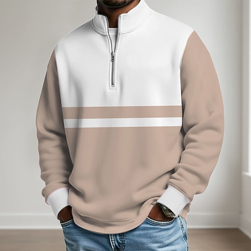 Per uomo Blocco di colori Polo con zip Manica Lunga Magliette polo Colletto alla coreana Casual Scuola Athleisure Ferie Abbigliamento quotidiano Stampa 3D Polo con cerniera a un quarto Primavera