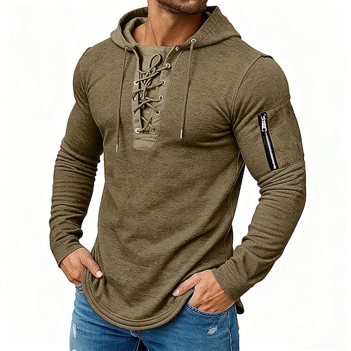 Per uomo Maglietta Camicia a Maniche Lunghe Manica Lunga Con Cappuccio Primavera Autunno Tutte le stagioni Tinta unica Moda Designer Essenziale Allacciato Vacanza Streetwear Casuale Blu Marrone