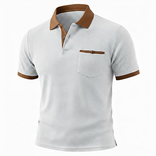 Per uomo Maglia da golf Polo a Maglia Waffle Casuale Affari Colletto Polo a Coste Classico Manica Corta Moda Moderno Tinta unica Bottoni Estate Primavera Tutte le stagioni Vestibilità aderente Bianco
