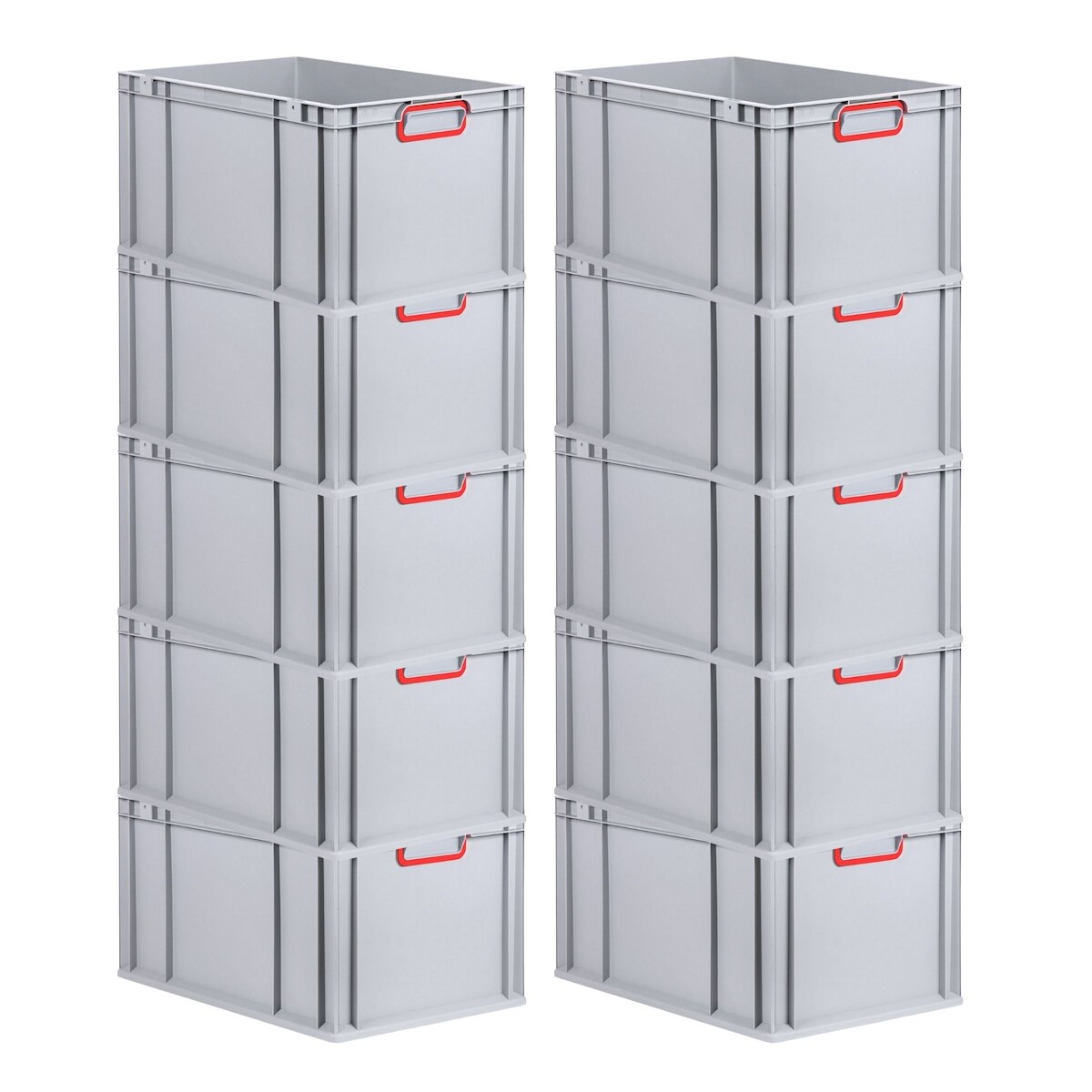 PROREGAL 10x Eurobox NextGen Color | HxBxT 22x40x60cm | 65 Liter | Griffe rot geschlossen | Verstärkter Boden | Eurobehälter