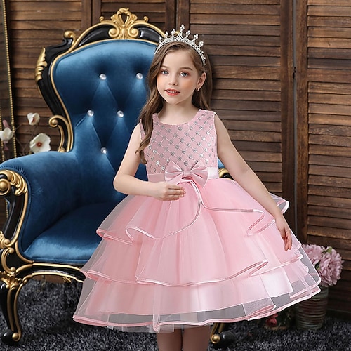 Abito da damigella d'onore bambina Ragazze Abito formale Abiti da sposa Vestito da Festa Feste Matrimonio Formale Principessa Dolce Patchwork Rete Tinta unica Senza Maniche Girocollo Rosa chiaro